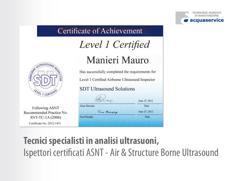 Ispettori certificati ASNT - Air & Structure Borne Ultrasound.